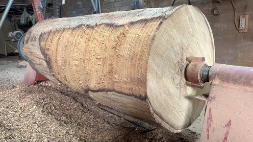 Крутанул бревно с человеческий рост на токарном станке, искусства резьбы больших размеров.