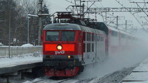 Электровоз ЧС200 - 012 несётся с двухэтажным поездом Москва - Санкт-Петербург
