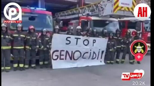"Нет геноциду в Газе". Пожарные Барселоны протестуют против геноцида палестинского народа Израилем и требуют принять меры.