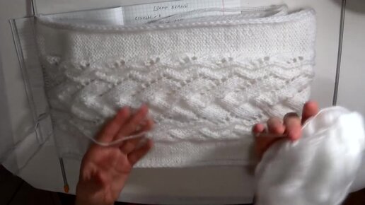 Белоснежный шарф из ангорки с ажурной полосой.