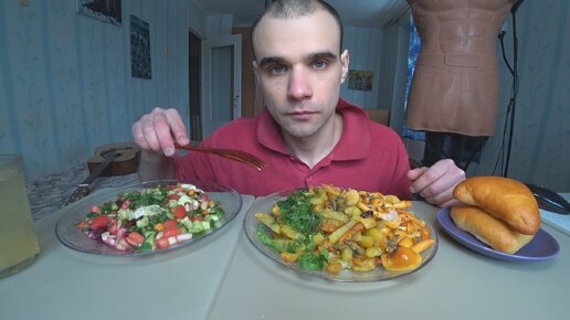 МУКБАНГ КАРТОШКА ЖАРЕНАЯ С ГРИБАМИ / РАССТЕГАИ / САЛАТ ОВОЩНОЙ / ОБЖОР / Mukbang EATING / ASMR / АСМР #994