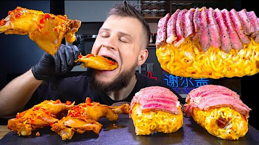 РУЛЕТ ИЗ ЛАПШИ С ГОВЯДИНОЙ, ОКРОЧКА В ДУХОВКЕ, ASMR MUKBANG, АСМР МУКБАНГ, 먹방, 大食い, たべる, 谢尔盖