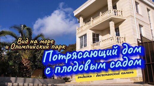 Дом с плодовым садом, облицованный дагестанским камнем. Рядом Сириус. Шикарный вид на море и Олимпийский парк.