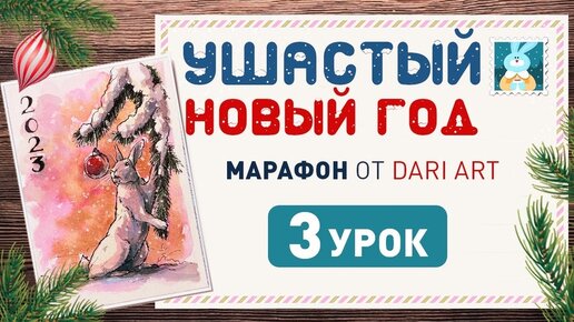 Рисуем акварельную открытку с зайчиком и новогодним шаром!