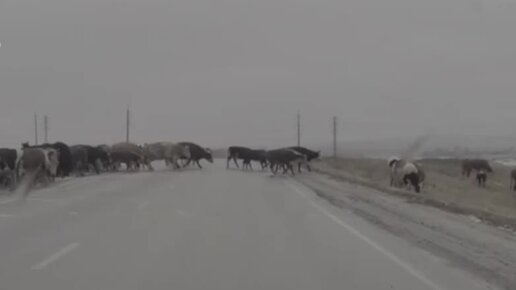 Теперь вы знаете как выглядят «коровы на льду» — в Магнитогорске после ледяного дождя стадо бурёнок с трудом переходит скользую дорогу.