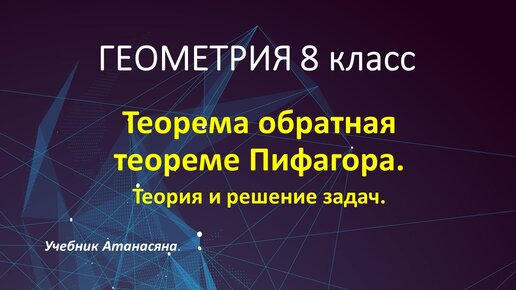 Геометрия 8 класс. Теорема обратная теорема Пифагора. Теория и решение задач.