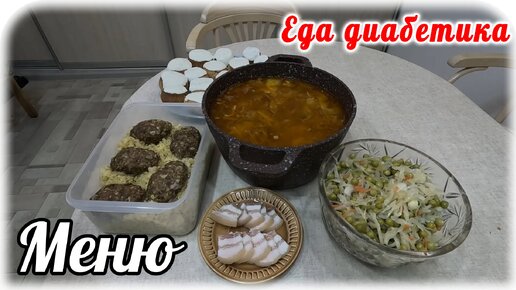 Еда диабетика на весь день. Всё самое простое и быстрое. Меню на весь день. Первое, второе, салат и булочки.