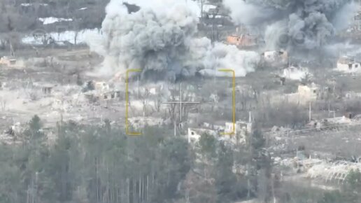Прилеты сразу четырех ФАБ-500М62 с УМПК по позициям ВСУ в Крынках на левом берегу Днепра.