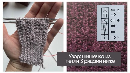 Вяжу узор: шишечка из петли тремя рядами ниже. Красивый мотив для носочков!