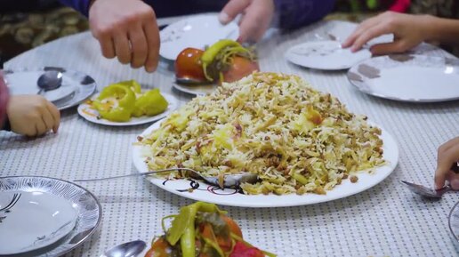Запеченный ароматный хлеб Хамра в Садже _ Приготовленный плов с лапшой и рисом _ Растопила масло