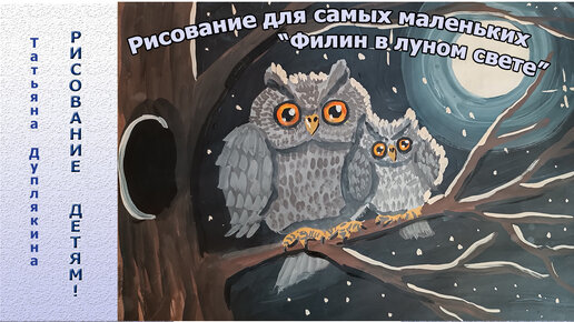 Рисование для самых маленьких, рисуем гуашью филина в лунном свете