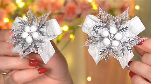 Новогодняя Идея Заколки Снежинки канзаши DIY