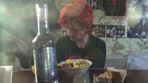 шиза алкогольный поминальный мукбанг водка пять озёр напиток любимая кола икра минтая солат и тушёная картошка с мясом