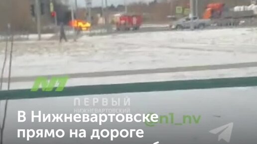 В Нижневартовске прямо на дороге загорелся автомобиль ^