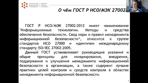 ГОСТ семейства 27000. Свод норм и правил обеспечения ИБ (Сергеев Александр КИ19-02.2б)