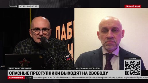 Помилование заключённых, участвующих в СВО. ВЛадимир Шаповалов в эфире канала СОЛОВЬЁВLIVE. 22.11.2023