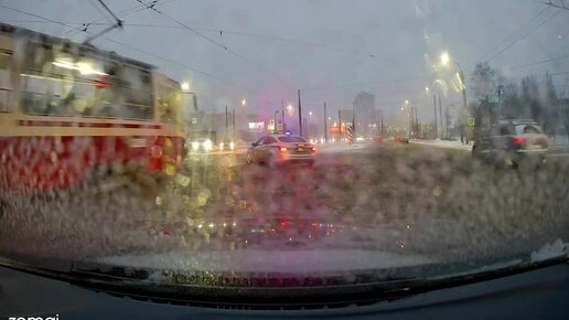 На Северном проспекте трамвай протаранил машину ДПС