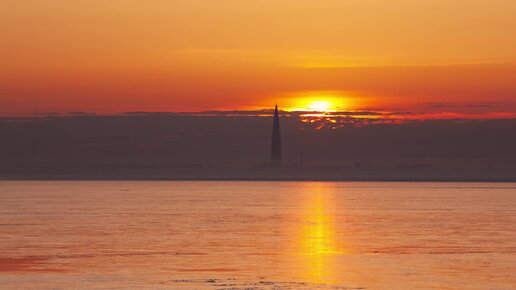 Восход Солнца на фоне Финского залива и Лахта центра. Таймлапс.