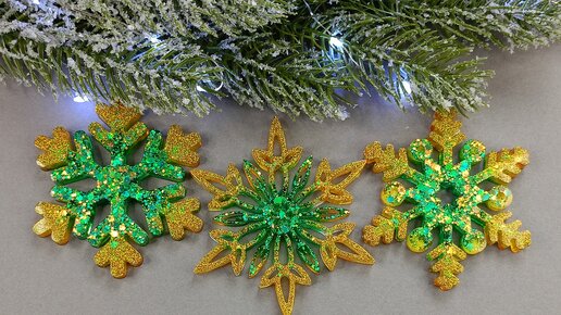 К Новому году Дракона - зеленые сверкающие снежинки!