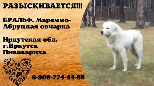 Пропала собака ! БРАЛЬФ. Мареммо-Абруцкая овчарка Иркутская обл. г.Иркутск Пивовариха