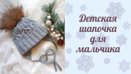 Зимняя шапка для мальчика спицами/ Размер 48