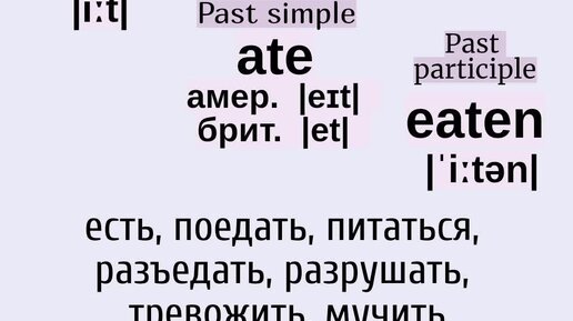 Неправильные глаголы в примерах👉eat, ate, eaten