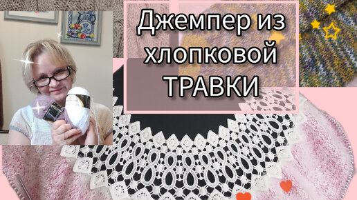 Джемпер из хлопковой травки,с кружевной кокеткой|Носки в подарок|Носки по новому.