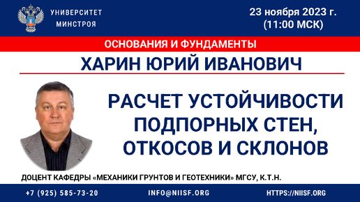 ВИДЕО. Харин Ю.И. Расчет устойчивости подпорных стен, откосов и склонов