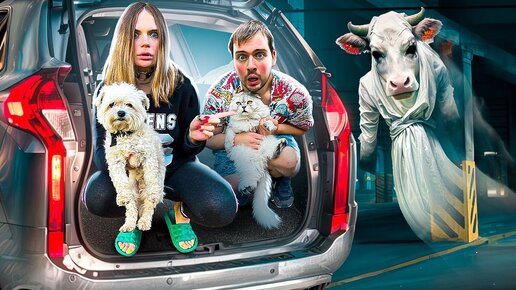 КОРОВЬЯ ГОЛОВА В РЕАЛЬНОЙ ЖИЗНИ | 24 ЧАСА В МАШИНЕ С КОТОМ И СОБАКОЙ