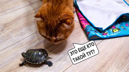 Кошки знакомятся с новым питомцем🐢 Смешные животные кот Персик кошка Фокси