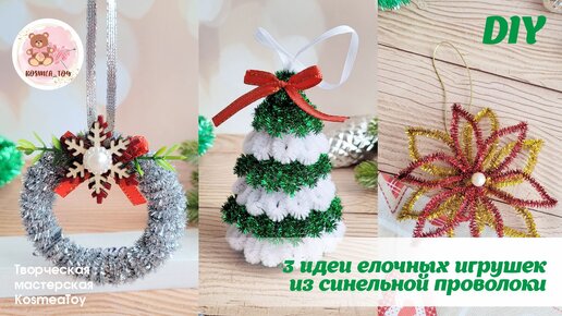 3 идеи елочных игрушек из синельной проволоки. Новогодний декор своими руками.