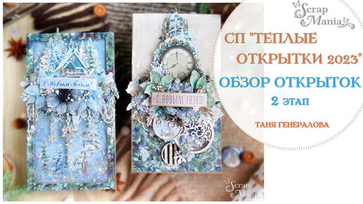 Новогодние открытки Тани Генераловой по СП "Теплые открытки 2023" 2 этап. ScrapMania