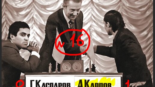 Гарри Каспаров играл эту партию №16 (матч 1987 года, Севилья) неплохо, но Карпов был на шаг впереди - победа за черных на 41 ходу, 0-1