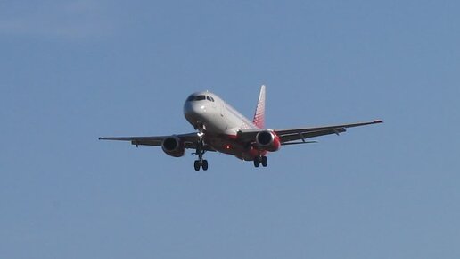 Сухой Суперджет 100 авиакомпании "Россия" заходит на посадку.