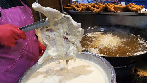 Популярная курица на рынке - уличное гастрономическое мероприятие в Корее.