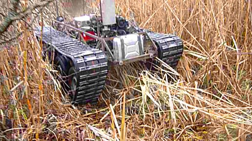 Езда по камышам на самодельном гусеничном вездеходе