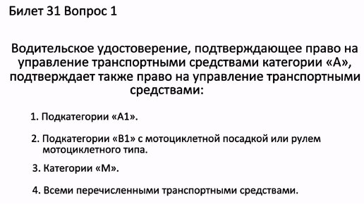 РАЗБОР БИЛЕТОВ ПДД. Билет 31 Вопросы 1-10.