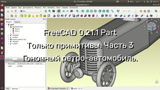 FreeCAD 0.21.1 Part Только примитивы. Часть 3. Гоночный ретро-автомобиль.