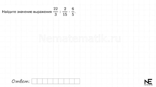Математика. ФИПИ ОГЭ 2024. Задание №6 Найдите значение выражения 22/3:2/15*6/5