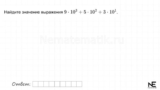 Математика. ФИПИ ОГЭ 2024. Задание №6 Найдите значение выражения 9*10^3+5*10^2+3*10^2