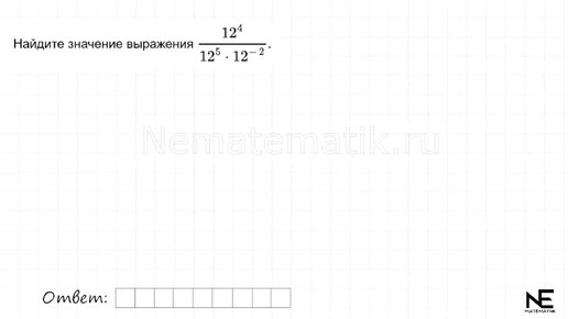 Математика. ФИПИ ОГЭ 2024. Задание №6 Найдите значение выражения 12^4/12^5*12^-2