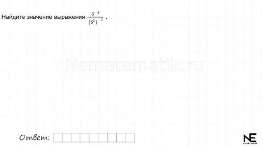 Математика. ФИПИ ОГЭ 2024. Задание №6 Найдите значение выражения 6^(-4)/(6^3)^-2