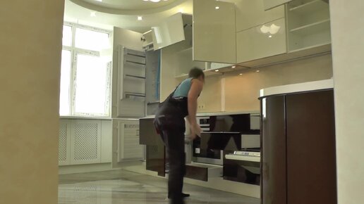 Угловая кухня глянец. Видео №2. Фасады МДФ покраска. Фурнитура Blum.