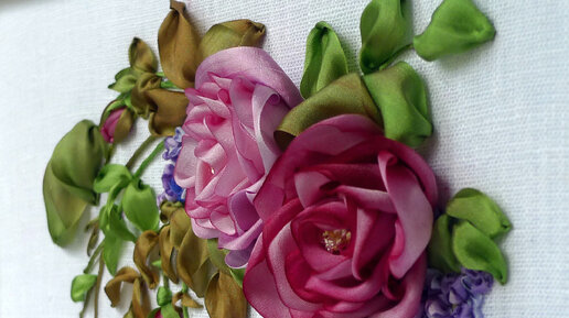 Вышивка лентами "Розовый рассвет" 1 часть / "Rosy dawn" 1part