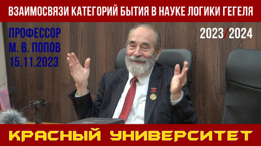 Взаимосвязи категорий бытия в «Науке логики» Г. Гегеля. Красный университет. Профессор М. В. Попов. 15.11.2023.