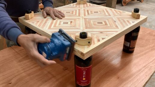 Творческие идеи по вторичному использованию старого дерева и бутылок! DIY: стол с красивыми узорами