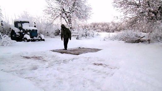 Чистка ковра зимой в деревне )