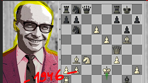 Давид Ионович Бронштейн за черных мастерски играет в индийской защите против Пахмана, 1946. Вариант фианкетто удался (матч Москва - Прага)
