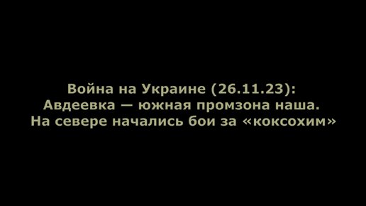 Война на Украине (26.11.23): Авдеевка — южная промзона наша. На севере начались бои за «коксохим»