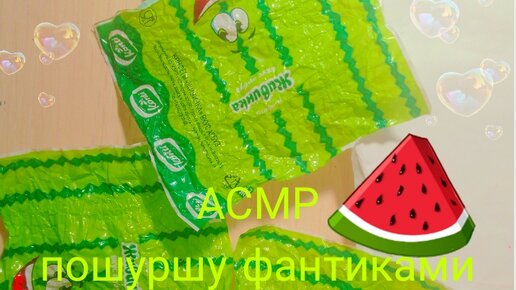 АСМР шуршание фантиками от конфет со вкусом арбуза🍉🍉🍉🍬
